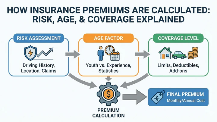 - Insurance premiums are calculated using risk, age, coverage, location, and lifestyle factors.
